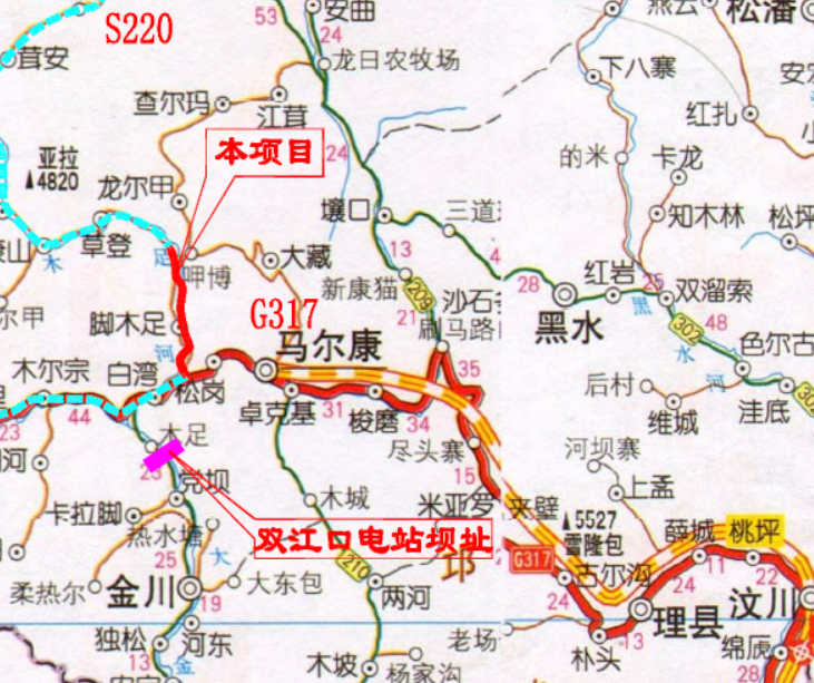 四川大渡河双江口水电站(S220线大渡河双江口水电站库区复建公路工程)IV标段位于四川省阿坝州,,,,,为四级公路升级刷新,,,,,蹊径长9.8公里,,,,,工程内容包括路基、桥梁、隧道工程。。。。。。 。。主要结构物为中桥3座,,,,,大桥2座,,,,,特大桥1座、隧道3座。。。。。。 。。