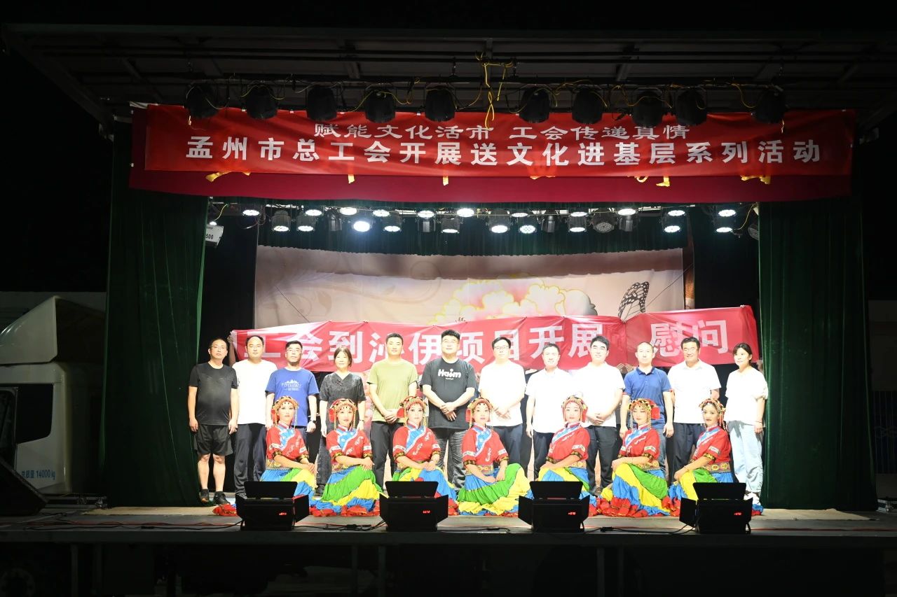 当天黄昏,,,,,,项目工会团结属地孟州市总工会,,,,,,组织开展送文化进下层上门慰问演出。。。。。孟州市总工会、曲艺团等多家单位总计30余名演员,,,,,,在项目驻地为职工们携手泛起了13个节目,,,,,,涵盖朗诵、赞美、舞蹈、地方戏曲等,,,,,,好一顿丰富的“精神大餐”。。。。。