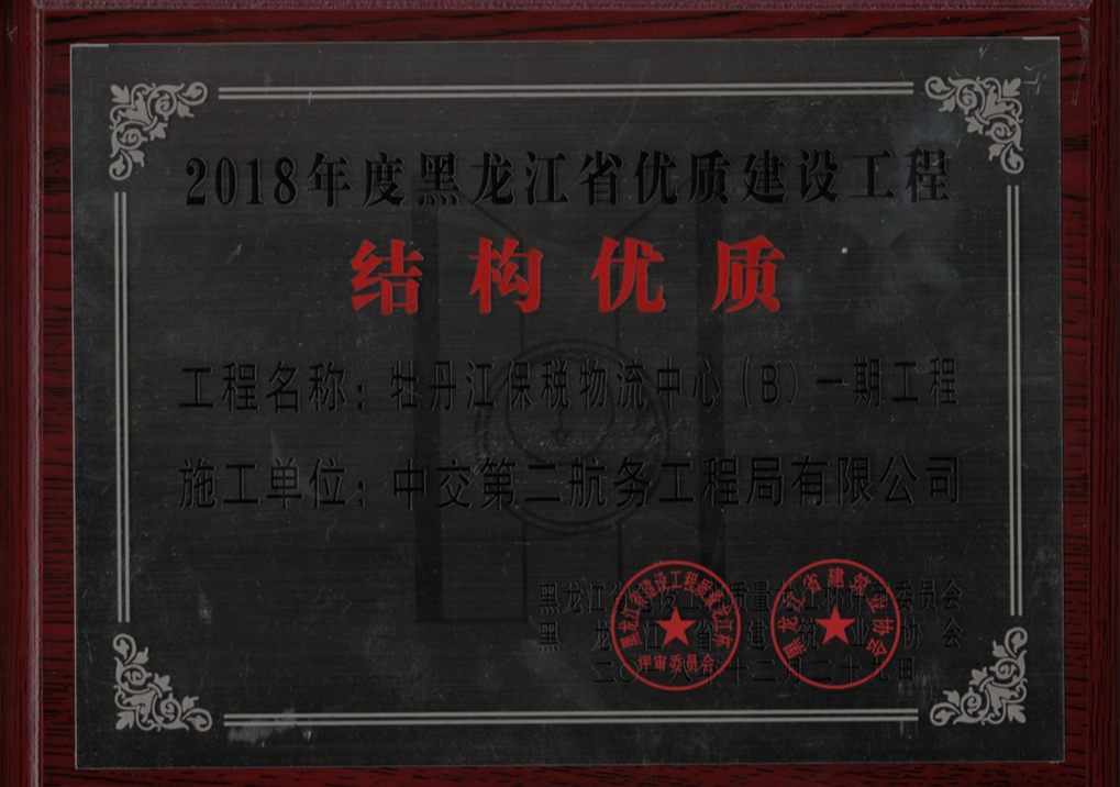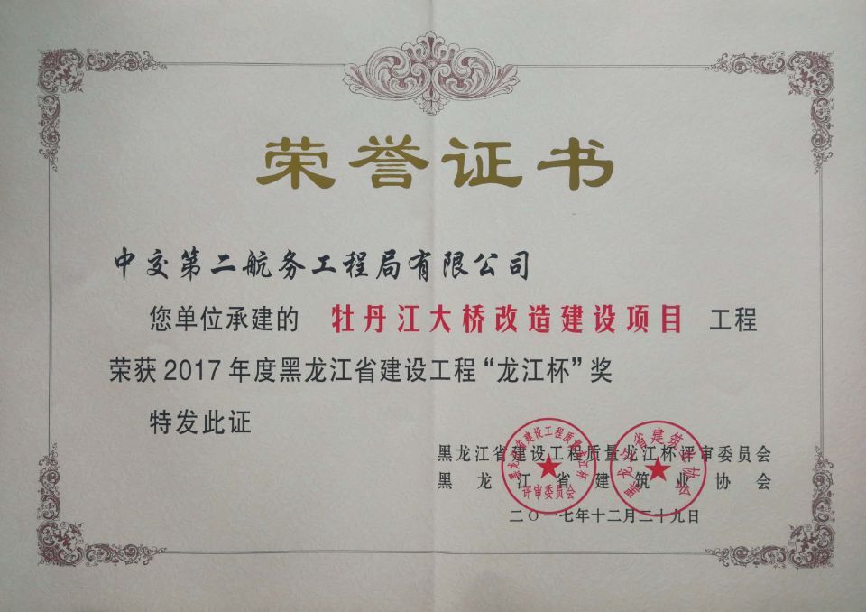 2017年黑龙江省“龙江杯”牡丹江大桥证书