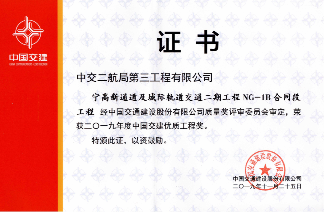2019年度中国交建优质工程奖(宁高新通道项目)