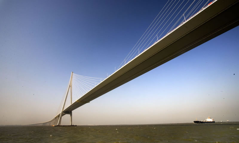 苏通长江大桥全长8.2公里,,,,,,,于2003年6月27日开工,,,,,,,2008年6月30日建成通车。。。。。。。其主跨跨径达1088米,,,,,,,是天下位居第二大跨径斜拉桥。。。。。。。苏通长江大桥是我国建桥史上建设标准最高、手艺最重大、科技含量最高的举世瞩目的现代化特大型桥梁工程之一。。。。。。。