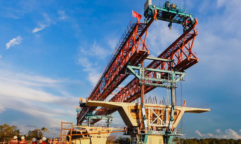 文莱大摩拉岛大桥全长5915米,,,,, ,主桥为一连刚构桥,,,,, ,引桥为节段预制拼装箱梁桥,,,,, ,大桥建成后成为文莱首座跨海特大桥梁,,,,, ,对推进文莱都会生长及大摩拉岛石油和自然气开发建设起着举足轻重的作用,,,,, ,大摩拉岛离别了无桥梁毗连文莱大陆的历史 。。。。。。。