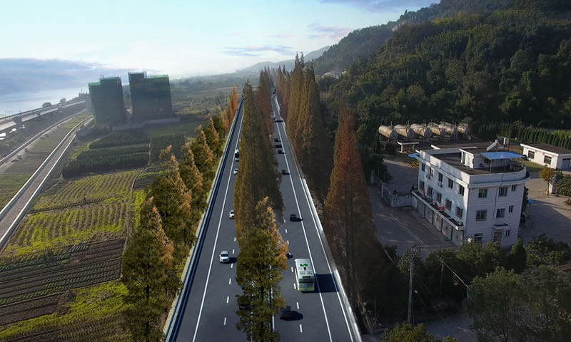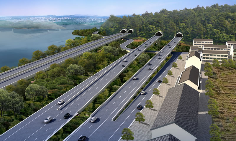 项目蹊径全长17.8公里,,,,,,,接纳双向四车道一级公路标准,,,,,,,设计时速80公里。。。。。。。设隧道7座9075米(合计单洞),,,,,,,桥梁10座共1980.2米;;;;;涵洞46道;;;;;互通交织22处。。。。。。。