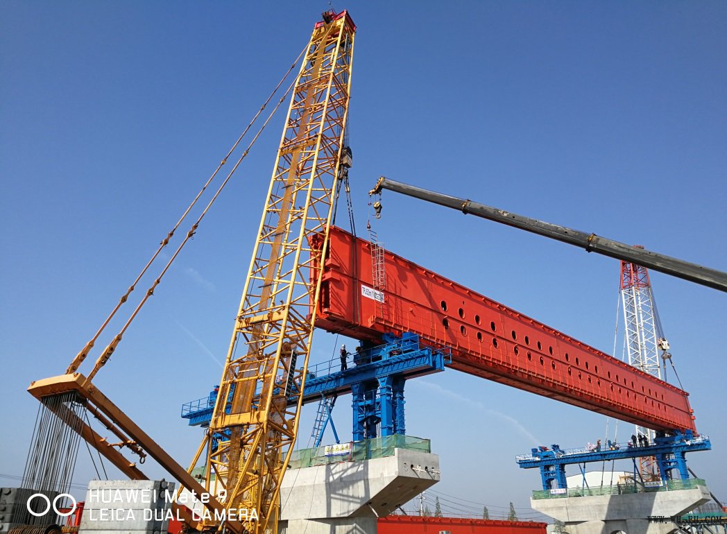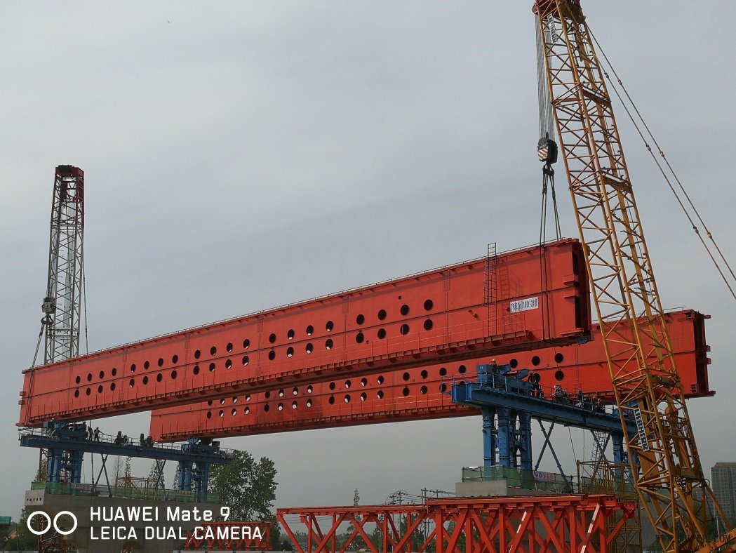 5月4日,,,,,南京五桥C1标南引桥工段两榀265吨重的TPJ-52单导梁节拼架桥机实现精准就位。。。 。。