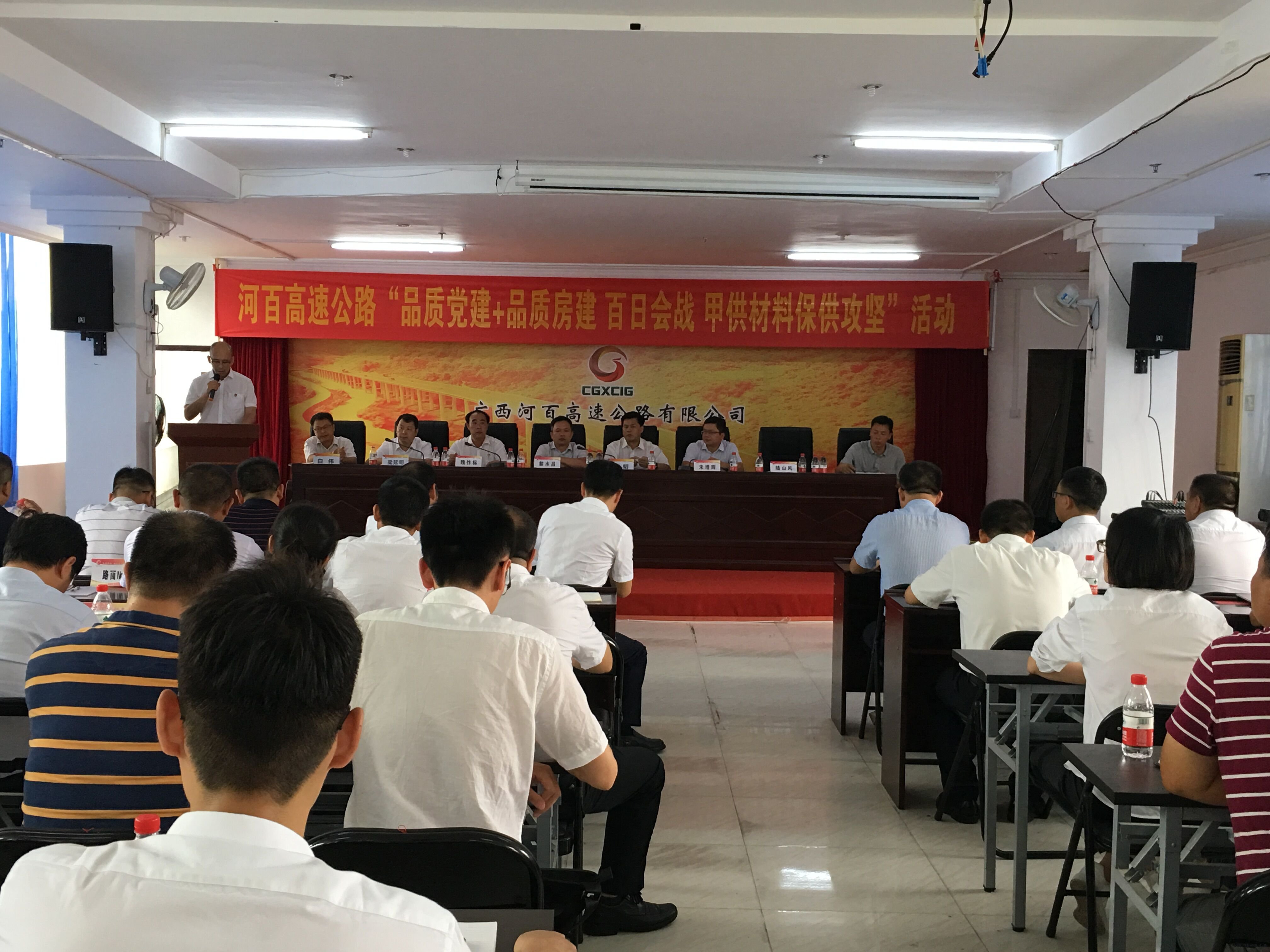 7月25日下昼,,,,,,河百高速公路建设指挥部组织开展了“品质党建+品质房建 百日会战”启动大会,,,,,,在启动仪式上,,,,,,公司No.D条约段项目认真人代表参建单位做了交流。。。。。。。。