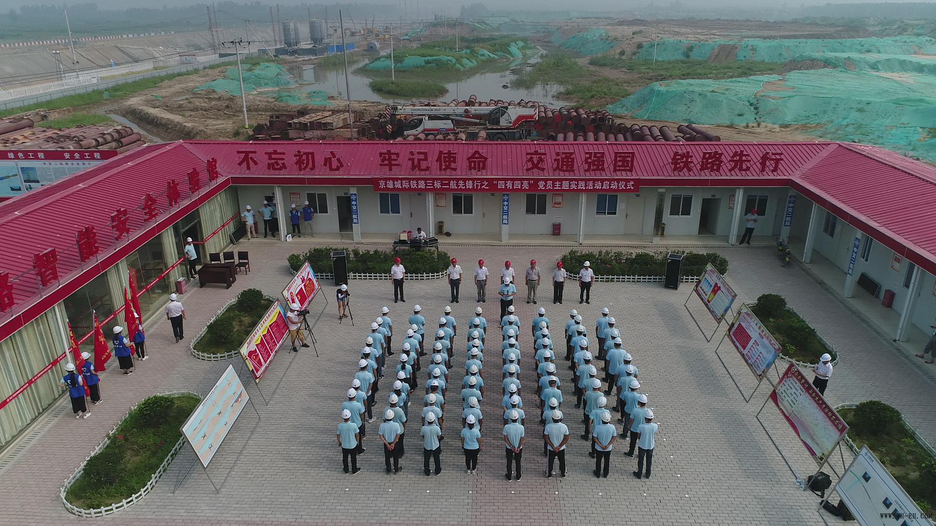 8月2日,,,,,京雄铁路三标项目部开展了“四有四亮”党员主题实践运动。。。。。。京沈京冀公司副书记李永成,,,,,廊坊市铁办主任张志强,,,,,二航局党委副书记张文胜、二航局党委事情部部长李成、四公司党委副书记刁湘俊等出席运动,,,,,项目部全体党员29人和青年突击队队员51人加入。。。。。。