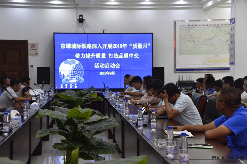 9月9日晚上19:30,,,,,京雄城际铁路三标项目在一楼大聚会室召开2018年质量月启动会,,,,,项目向导、各部分认真人以及现场手艺职员等46人加入。。。。。。