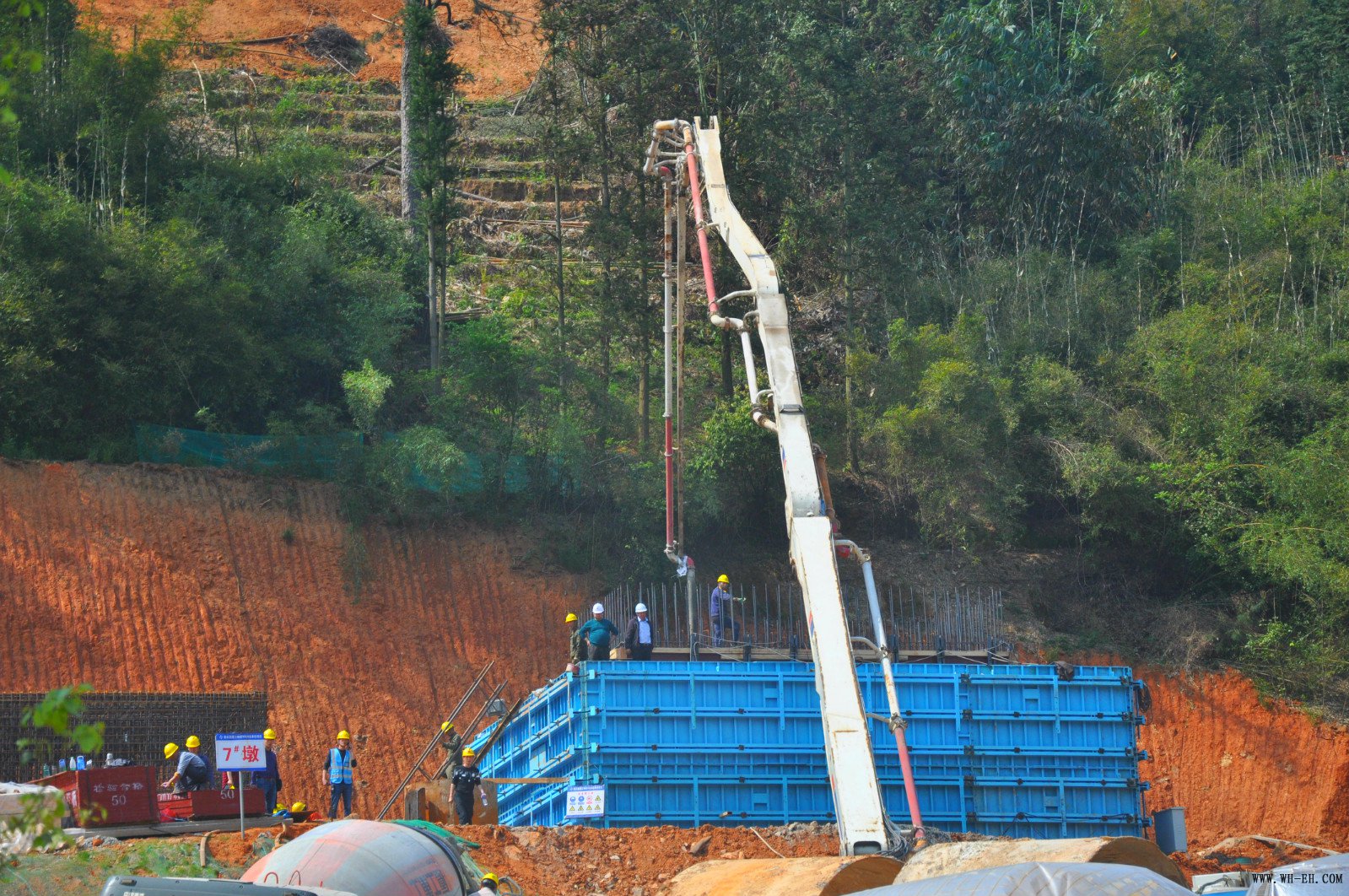 3月13日下昼,,,,,,,,陪同着混凝土泵车运转的轰鸣声,,,,,,,,沙溪大桥首个承台最先浇筑,,,,,,,,这标记着沙溪大桥从基础施工进入上部结构施工阶段。。。。。。。。