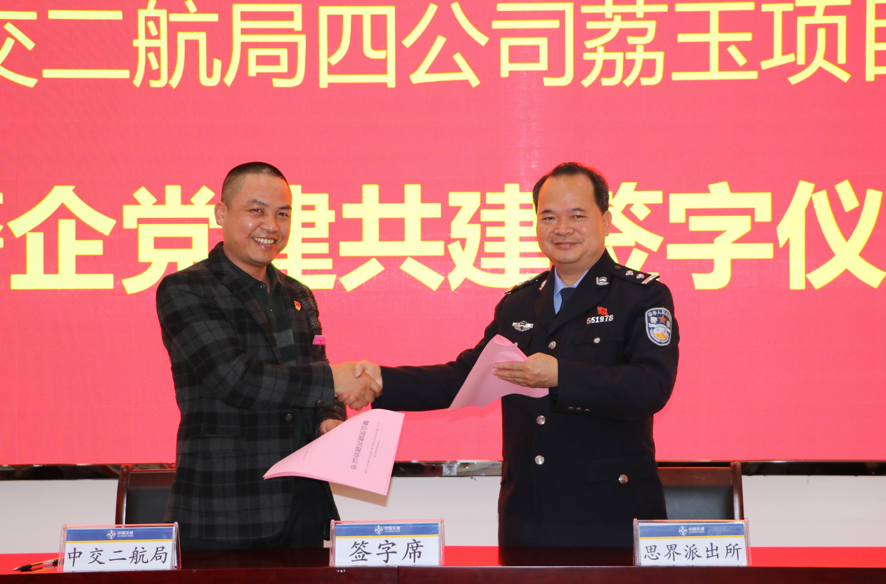 2019年是广西荔玉高速公路项目的要害之年、攻坚之年,,,,,,,,通过次警企党建共建运动,,,,,,,,将增进警企友谊,,,,,,,,增强警企相同与协作,,,,,,,,为工地周边创造稳固协调的治安情形,,,,,,,,增进项目施工清静、有序推进。。。。。。