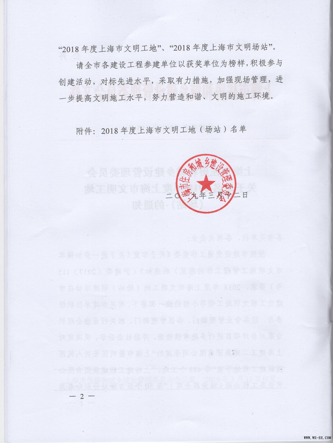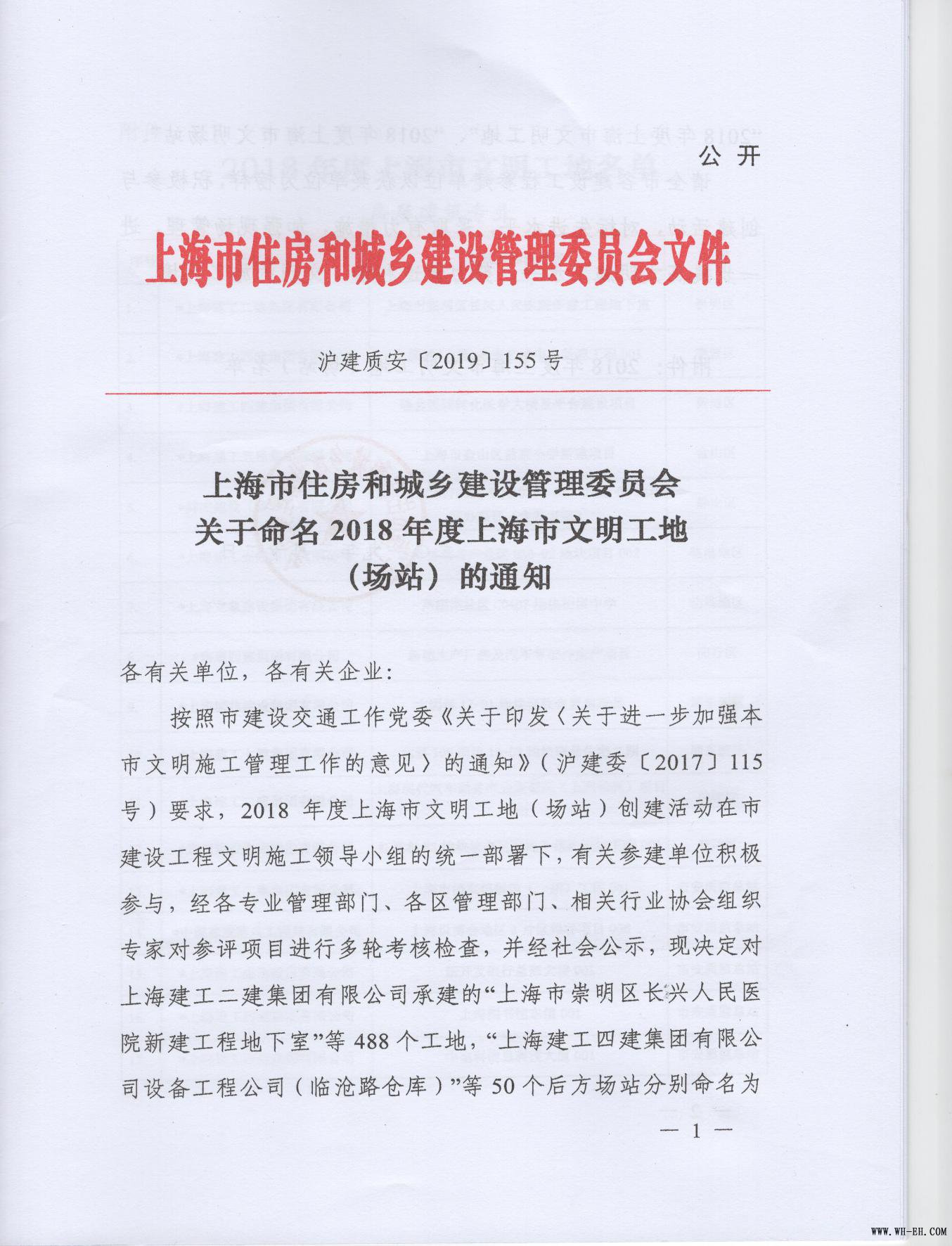 春暖花开的3月,,,,,上海市住房和城乡建设管理委员会宣布了2018年度上海市文明工地的名单,,,,,公司承建的上海S26公路入城段(G15-嘉闵高架路)新建工程S26R-7标项目名列其中,,,,,喜获上海市文明工地称呼。。。。。。。