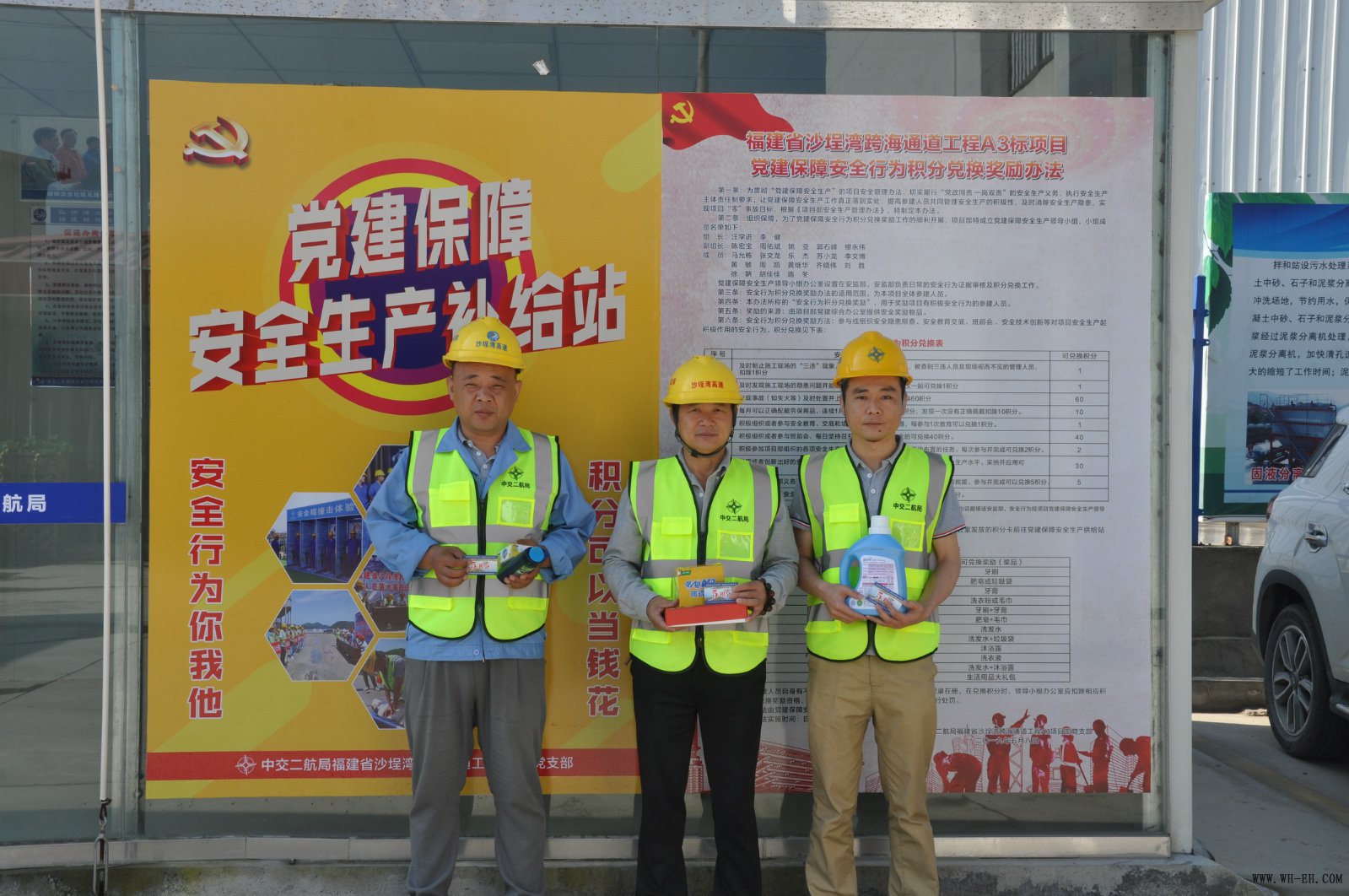 沙埕湾A3标项目部主要施工内容为沙埕湾跨海大桥,,,,,为让党建包管清静生产事情真正落到实处,,,,,提高参建职员配合管理清静生产的起劲性,,,,,实时消除清静生产隐患,,,,,实现清静零事故目的。。。。。项目部制订了《党建包管清静行为积分兑换奖励步伐》,,,,,设立了党建包管清静生产补给站。。。。。项目参建职员加入或组织清静隐患排查、清静教育交底、班前会、清静手艺立异等对项目清静生产起起劲作用的清静行为就可以获得响应积分,,,,,依附积分卡可以到清静生产补给站兑换所需的生涯用品。。。。。此项清静管理激励新行动的实验,,,,,获得了项目参建职员的普遍认可,,,,,有用提高了参建职员的清静意识。。。。。
