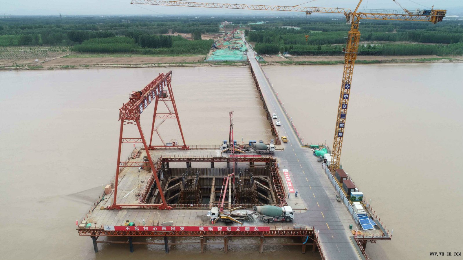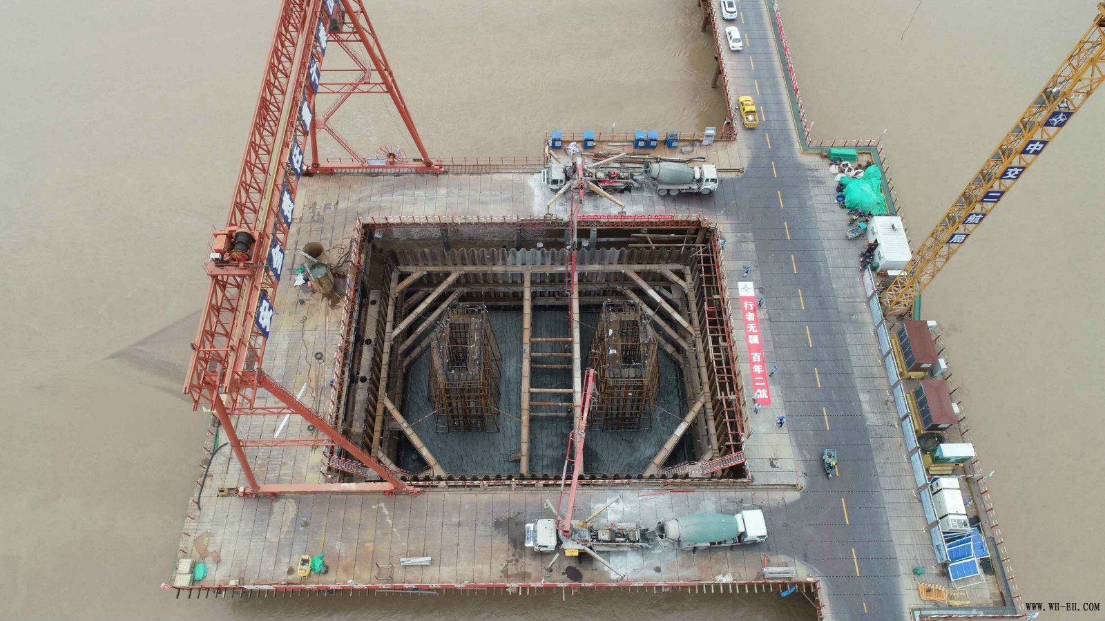 5月30日,,,,,,,,济南凤凰路黄河大桥水中主墩24号墩承台首层混凝土顺遂浇筑完成。。。。。。。