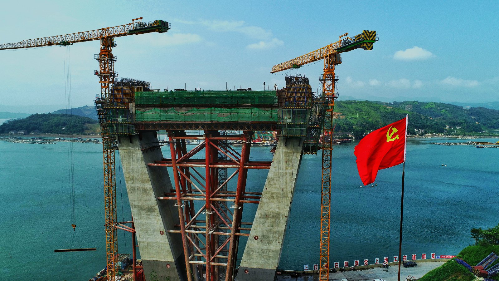 下横梁结构设计重大,,,,,质量标准要求高,,,,,施工手艺难度大。。。。。。。。在施工时代,,,,,多次遭受暴雨等卑劣天气的磨练。。。。。。。。面临难题,,,,,项目部施展党建引领作用,,,,,统筹妄想,,,,,党员冲锋在前,,,,,全体职工同心协力,,,,,攻坚克难,,,,,在节点工期内顺遂完成浇筑。。。。。。。。
