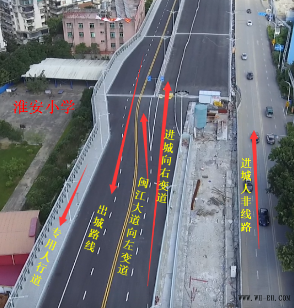 在出城方面,,,,,,,,非无邪车和行人继续在闽上交织口通过红绿灯管控,,,,,,,,驶入新建妙峰路大桥出城,,,,,,,,桥梁北侧设置专用人行道。。。。。。三座桥通车后,,,,,,,,杨洪交织口、洪塘大桥三环交织口坚持现状通车方法稳固,,,,,,,,闽上交织口进城车辆坚持禁左通行限制稳固。。。。。。