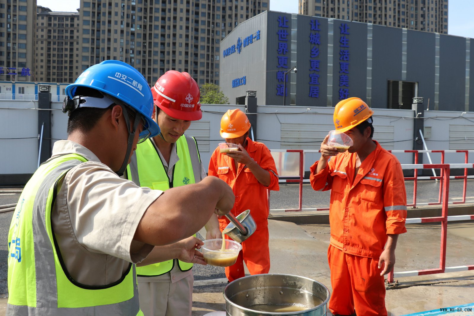 克日 , ,,,,,杭州市一连高温天气 , ,,,,,给施工现场的一线员工带来了严肃的磨练。。。 。。。。留祥路提升工程项目部起劲开展抗高温、战酷暑、送清凉慰问运动 , ,,,,,切实做好防暑降温事情。。。 。。。。