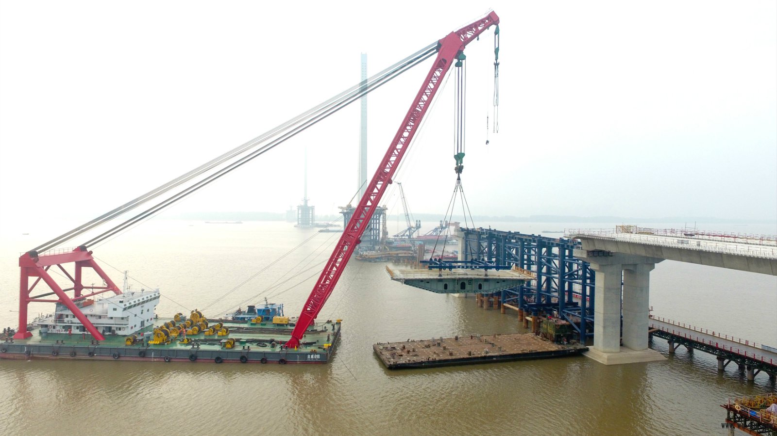 南京五桥边跨首节钢混组合梁乐成吊装(9.2)