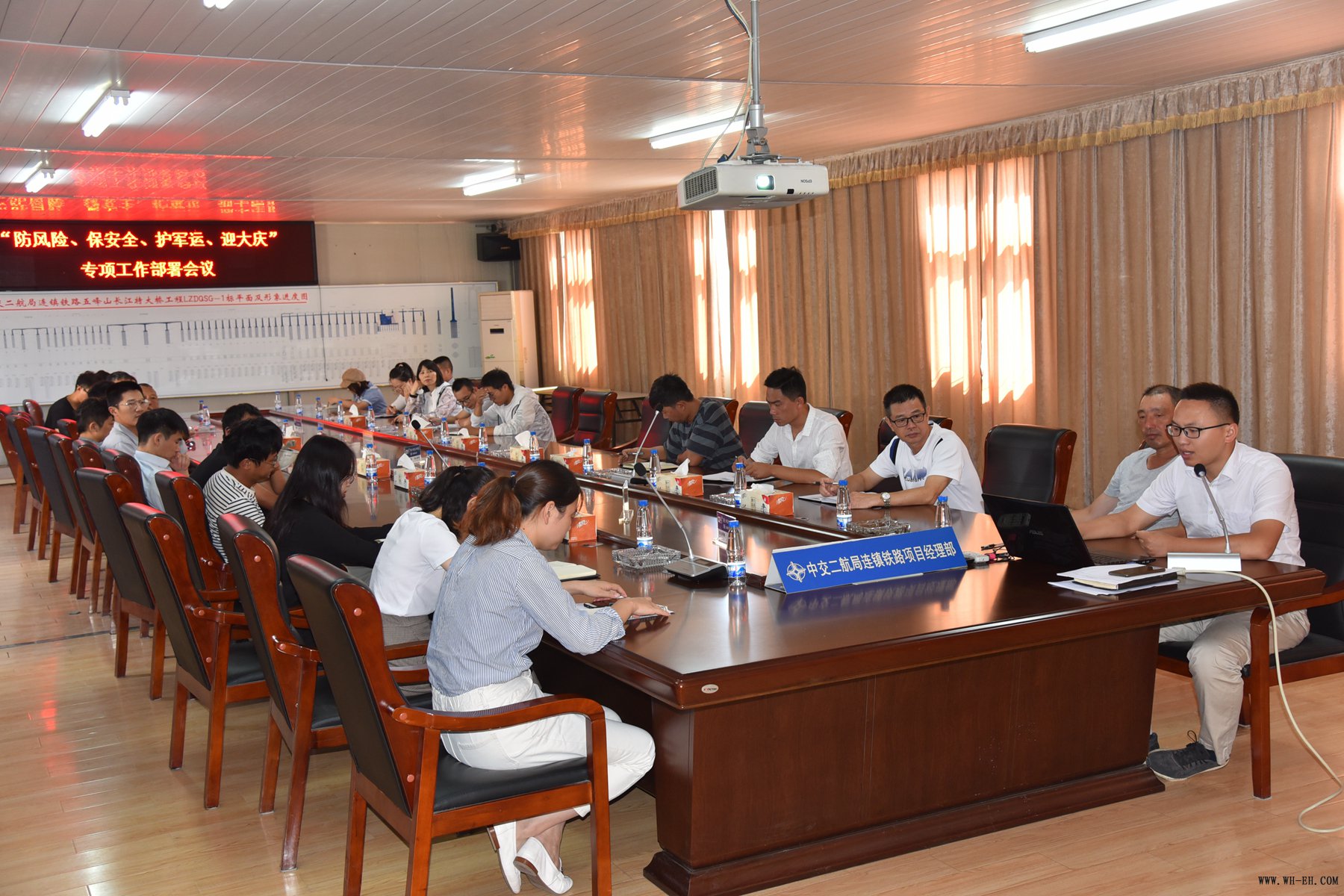 9月20日上午,,,,,,,,连镇铁路项目部召开“防危害、保清静、护军运、迎大庆”专项事情安排聚会,,,,,,,,项目部全体职工参会。。。。。。。