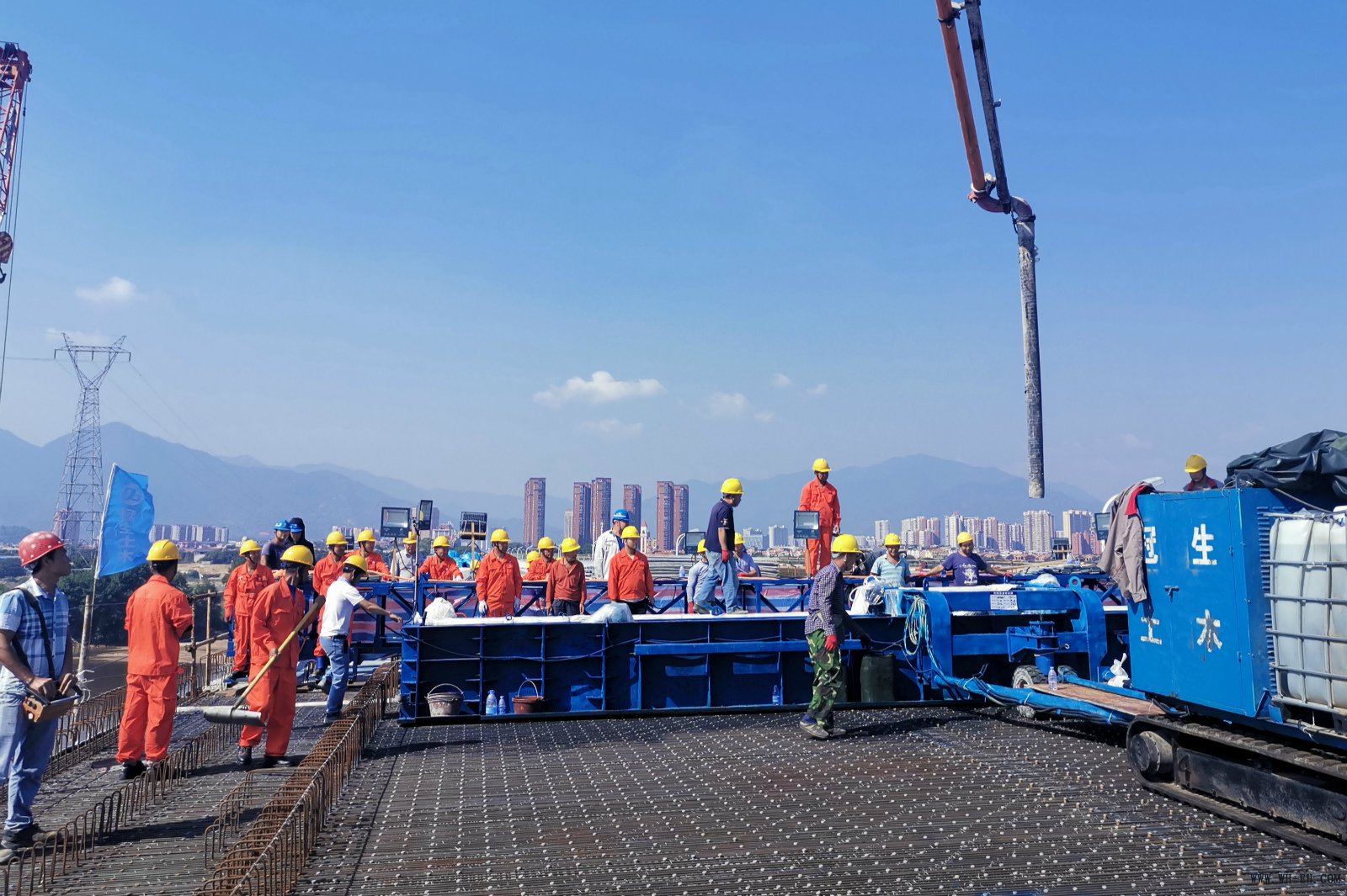 10月19日,,,,,,,由公司承建的福州洪塘大桥拓宽改建工程主桥桥面超高强韧性砼完成首次200米混凝土摊铺。。。。。。