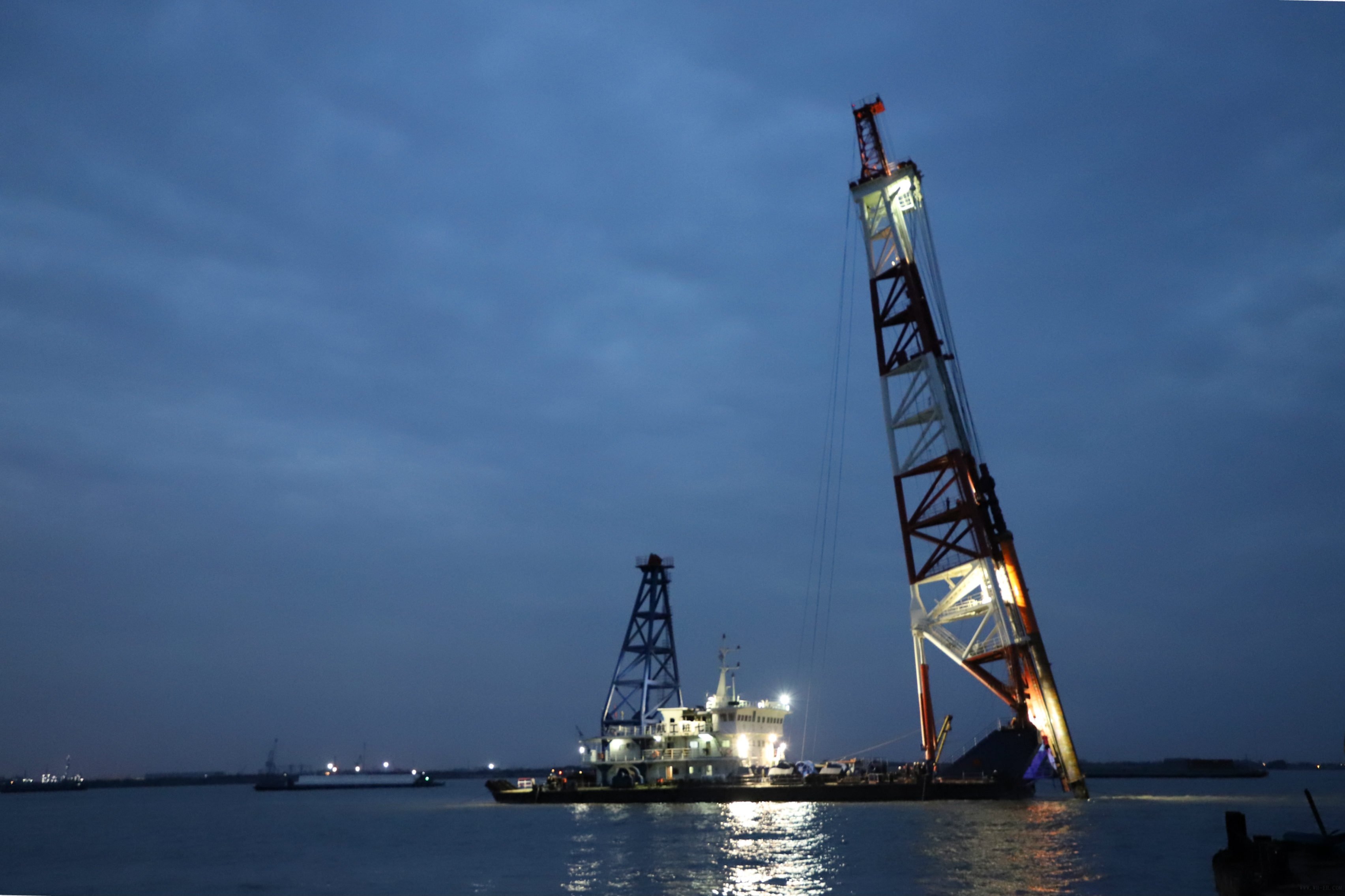 10月26日,,,,,,,公司承建的常泰长江大桥CT-A1标顺遂打下了5号墩沉井定位锚墩第一根钢管桩,,,,,,,标记着主桥水上施工正式启动。。。。。。。。