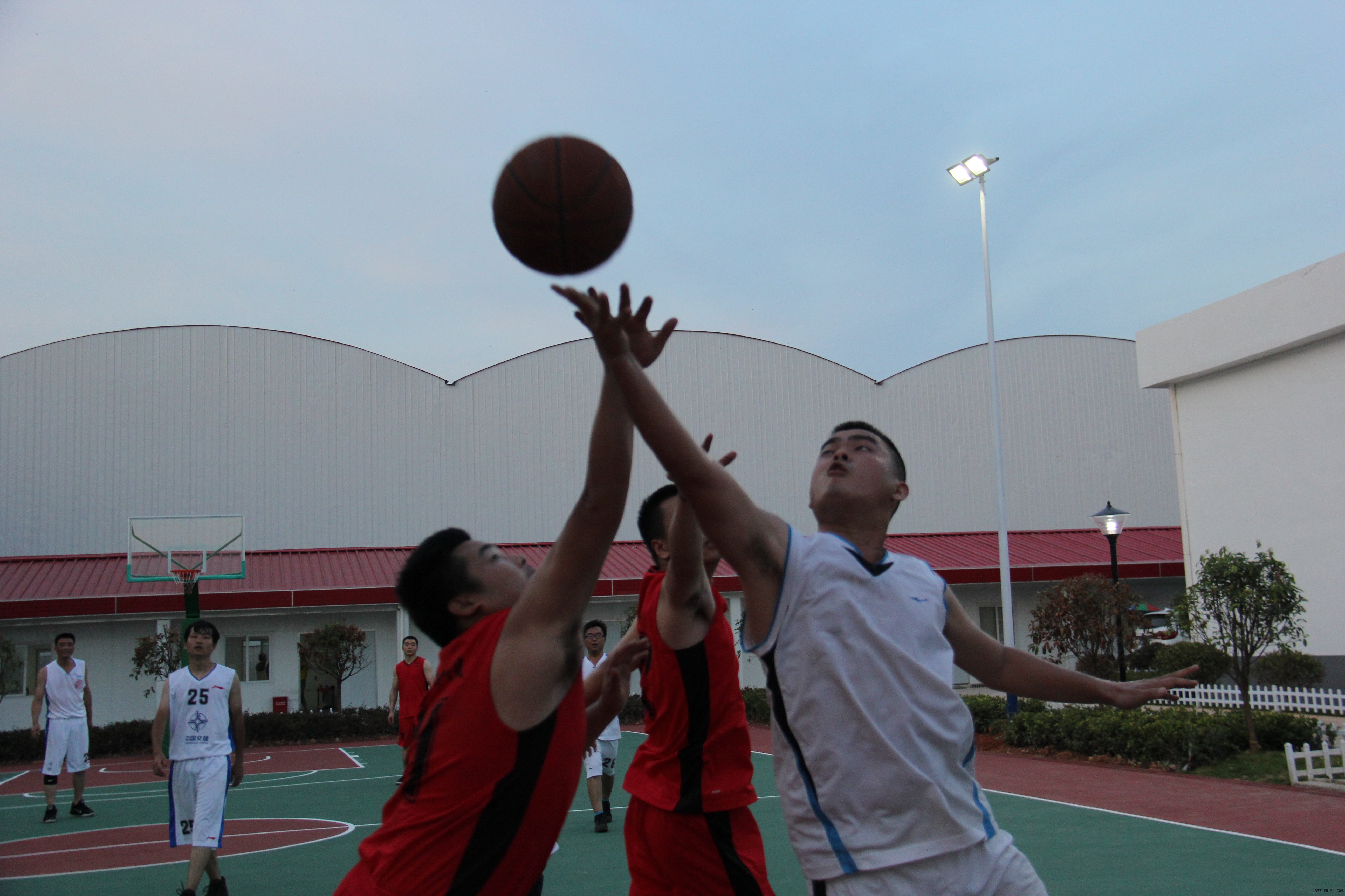 赛场上,,,,,双方球队你来我往,,,,,拼抢起劲,,,,,都体现出了较高水平,,,,,精彩的攻防时势层出不穷。。。。。一轮轮地抢球、突破分球、中投、远投、三步上篮,,,,,双方队员在协调友谊的气氛中充分展示自我、充分验展团队合作力量,,,,,将角逐推向一个个热潮,,,,,引来了现场观众的阵阵喝彩声。。。。。