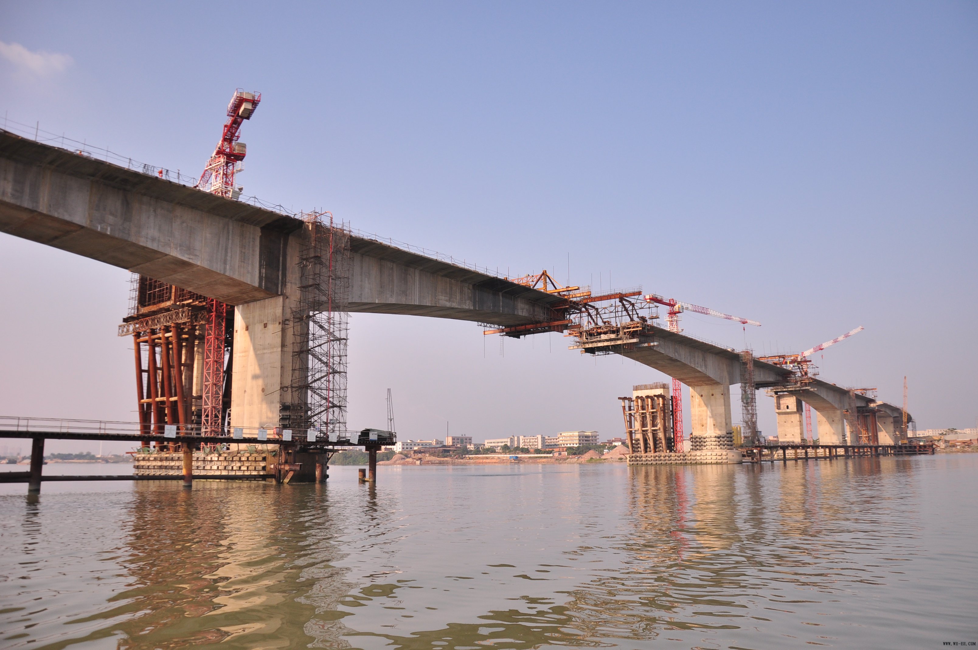 大桥接纳预应力混凝土一连钢构和一连钢构系统预应力混凝土T梁组合,,,,,江中主航道区和两岸江堤接纳一连钢构,,,,,江中滩岛接纳T梁组合。。。。。。