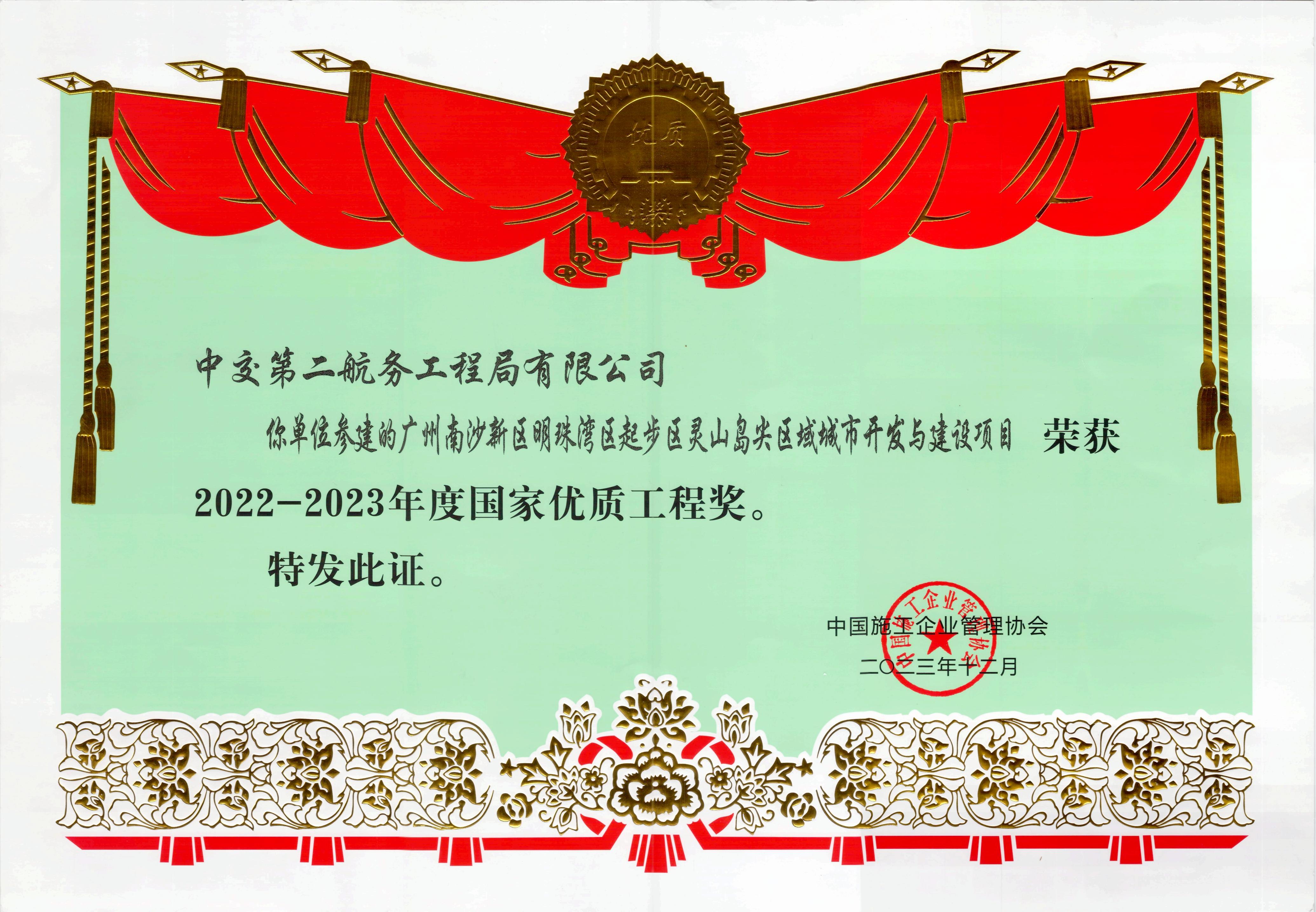 广州南沙新区明珠湾区起步区灵山岛尖区域都会开发与建设项目获2022-2023年度国家优质工程奖