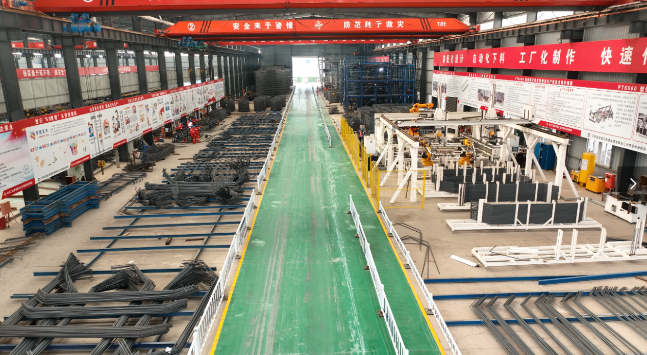 项目中标后,,,,,,,手艺中心迅速建设专门攻关小组,,,,,,,以“装配化设计、自动化下料、工厂化制作、快速化装置、智能化控制”为总体理念,,,,,,,研究适用于常泰长江大桥主塔的钢筋部品装配化施工工艺,,,,,,,自主研发了PT6500型钢筋片体柔性制造生产线、KT6000型钢筋块体柔性制造生产线、活动式钢筋部品组拼胎架等首台套装备,,,,,,,形成了部品钢筋智能制造生产线,,,,,,,将塔上钢筋施工转入地面工厂举行流水线同步作业。。。。。。钢筋部品组拼成型后举行节段整体吊装,,,,,,,接纳挤压锥套快速毗连,,,,,,,大幅镌汰塔上钢筋作业时间,,,,,,,且在混凝土等强时代完成钢筋施工,,,,,,,不占用要害线路时间,,,,,,,显著提高了塔柱施工效率。。。。。。自2022年8月7日举行首节段钢筋部品吊装至今,,,,,,,五个月的时间里,,,,,,,完成了21节段共84个钢筋部品施工,,,,,,,主塔“长高”126米!