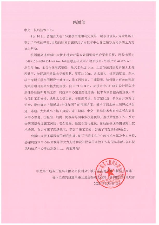 8ÔÂ10ÈÕ£¬£¬£¬£¬£¬£¬ £¬£¬Ëæ×Ųܶ𽭴óÇÅ16#Ö÷¶ÕΧÑß˳ËìÍê³ÉµÚÒ»²ã³Ð̨½½Öþ£¬£¬£¬£¬£¬£¬ £¬£¬ÊÖÒÕÖÐÐÄÊÕµ½ËĹ«Ë¾º¼ÉÜð®¸ßËÙÏîĿ˾Àí²¿Ð»Ð»ÐÅ£¬£¬£¬£¬£¬£¬ £¬£¬ÏîÄ¿²¿µÐÊÖÒÕÖÐÐĽṹ¹¤³ÌÉè¼Æ²¿Ôڲܶ𽭴óÇÅ16#Ö÷¶ÕΧÑßÊ©¹¤Àú³ÌÖУ¬£¬£¬£¬£¬£¬ £¬£¬ÓÂÓÚÃæÁÙÄÑÌ⣬£¬£¬£¬£¬£¬ £¬£¬È«Á¦ÒÔ¸°Ö§³ÖÏîÄ¿²¿¸ßЧʩ¹¤µÄ̬¶ÈÌåÏÖÔÞÐí¡£¡£¡£¡£¡£¡£¡£¡£