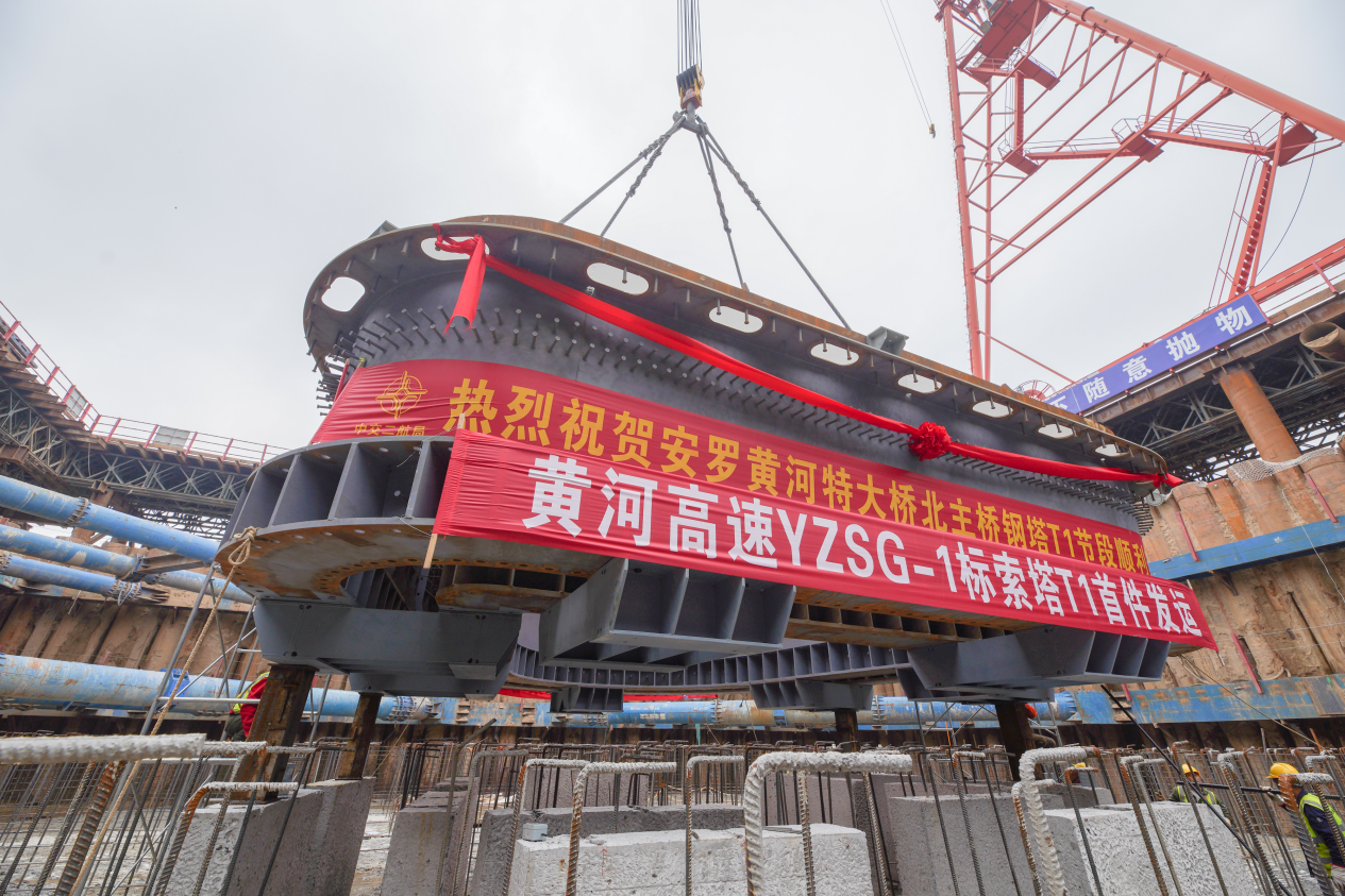 7月11日,,,,,,优德88官网网站二航局承建的黄河最长公路桥梁安罗黄河特大桥北主塔首节钢壳节段吊装顺遂完成,,,,,,标记着特大桥施工进入新的要害阶段。。。。。。。