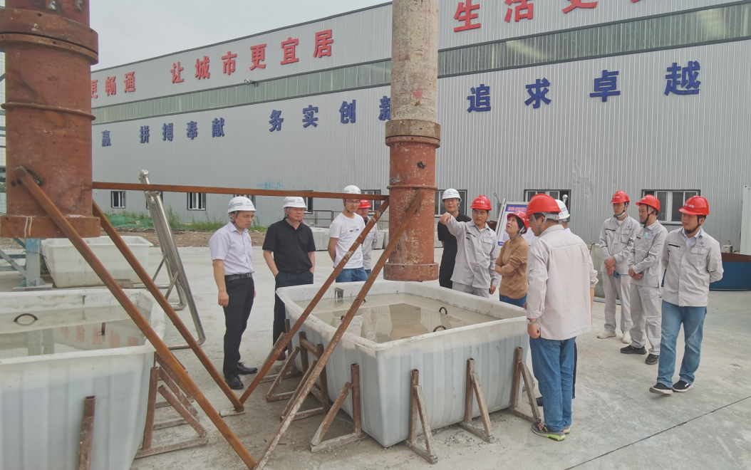 6月13日上午,,,,,张靖皋长江大桥指挥部向导莅临常泰长江大桥调研旅行了钢管混凝土足尺模子工艺试验,,,,,手艺中心桥梁结构手艺部副总工胡伟作现场试验情形先容。。。。。。。
