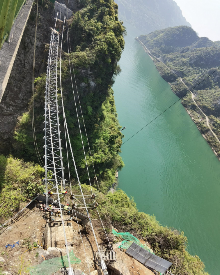 天柱山人行悬索桥涉及施工环节多、施工历程重大、历程控制精度要求高;桥梁位于长江三峡周围的U型河谷,,,,,受峡谷风影响,,,,,施工精度难以控制;桥梁锚碇直接布设于悬崖峭壁上,,,,,主缆、桥面与河谷底部高差凌驾100m,,,,,施工危害大。。。。。