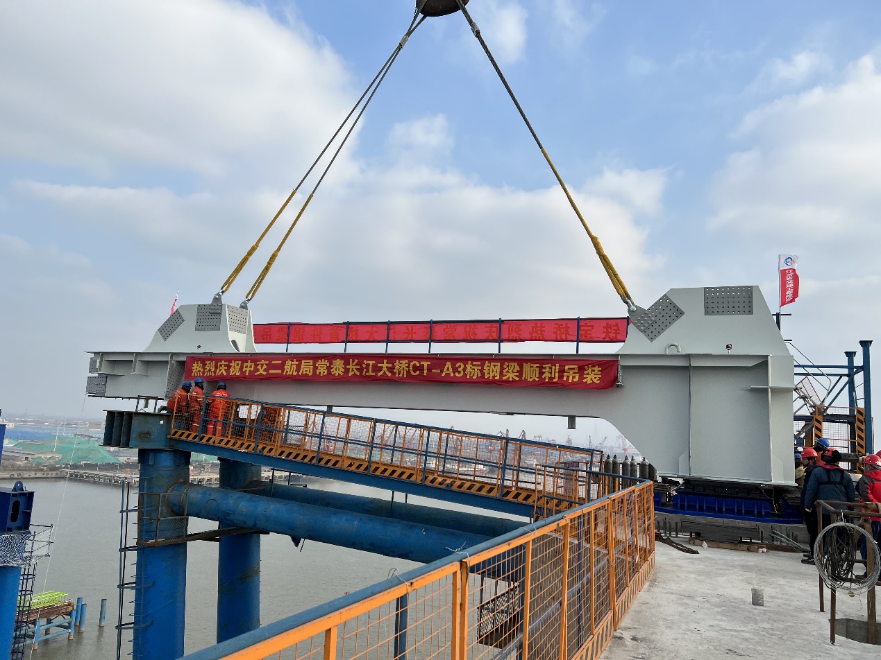 手艺中心助力常泰大桥天星洲专用航道桥首节钢梁架设