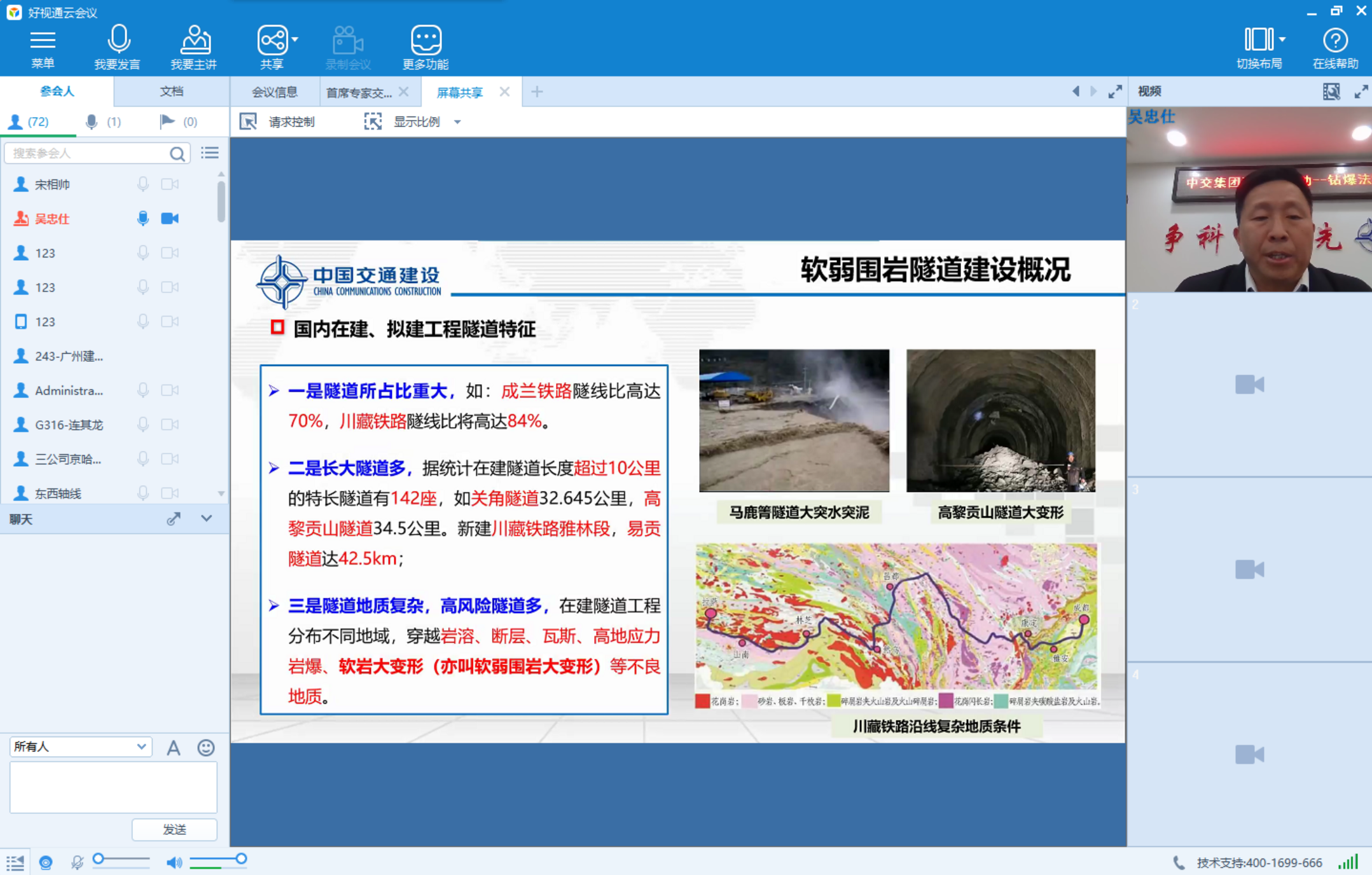 为进一步提高施工科技水平,,,,,,,增强手艺立异意识,,,,,,,树立突破进取的科研精神,,,,,,,手艺中心开展了以首席专家讲座为代表的系列科技月运动。。。。。。11月24日,,,,,,,公司“钻爆法隧道施工要害手艺”学科首席专家吴忠仕通过手艺咨询服务在线平台举行了以“软弱围岩隧道变形控制手艺”为主题的学科首席专家手艺讲座,,,,,,,手艺中心、科技管理部、生产管理部、众多项目部等工程手艺与管理职员200余人通过“线上+线下”方法加入了本次讲座交流运动。。。。。。