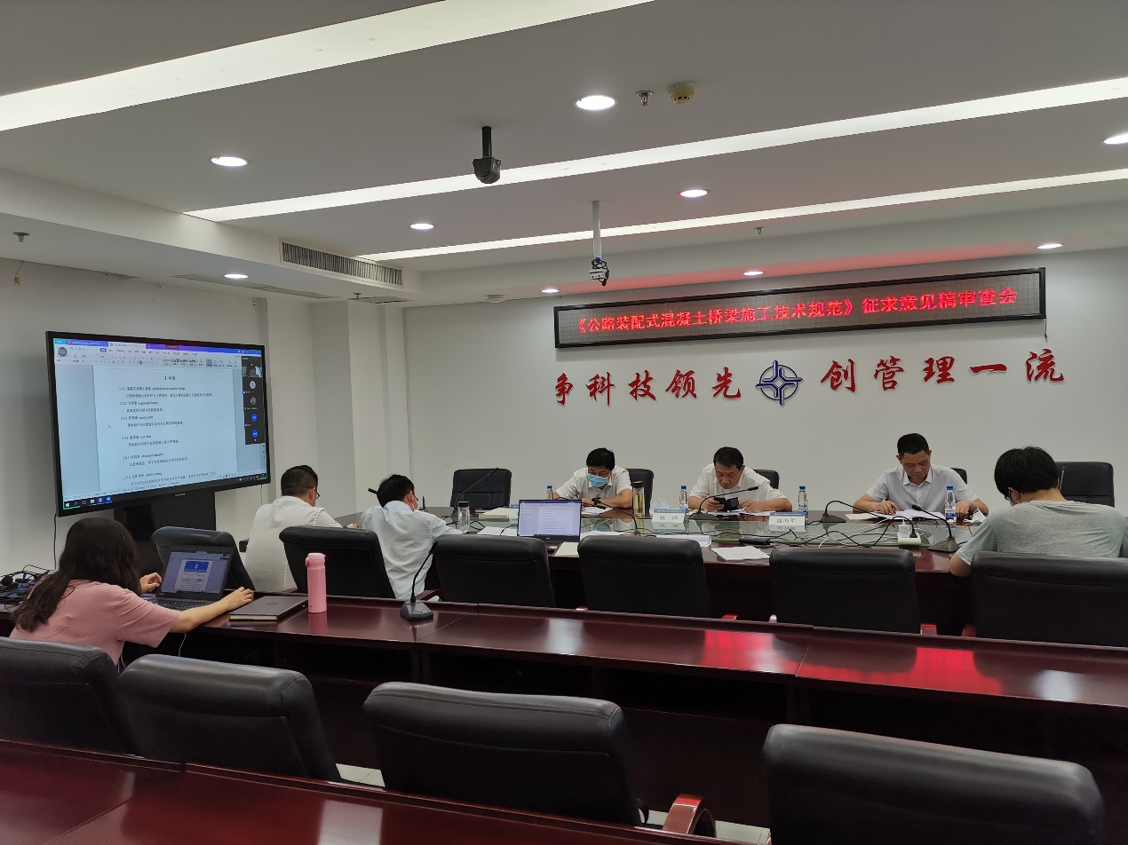 克日,,,, ,,公司主编的《公路装配式混凝土桥梁施工手艺规范》征求意见稿审查视频会在武汉召开,,,, ,,公司党委副书记、总司理张鸿,,,, ,,手艺中心总司理张永涛,,,, ,,公司科技管理部副总司理盛水师加入了聚会。。。。 。。。