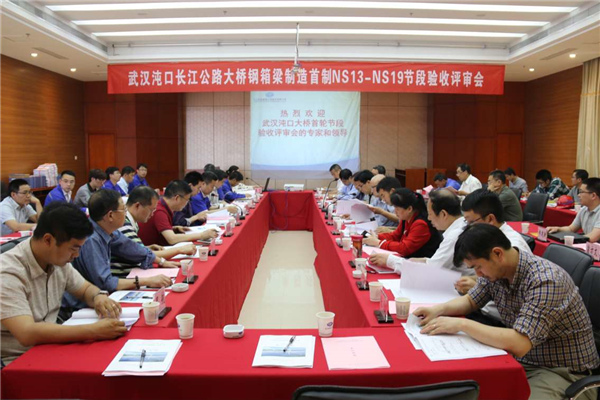 5月16日,,,,,,,武汉沌口长江公路大桥钢箱梁制造首制节段验收评审会在武船双柳厂区召开,,,,,,,智行国际沌口大桥全寿命清静监测项目认真人田唯等应邀参会。。。。。。。