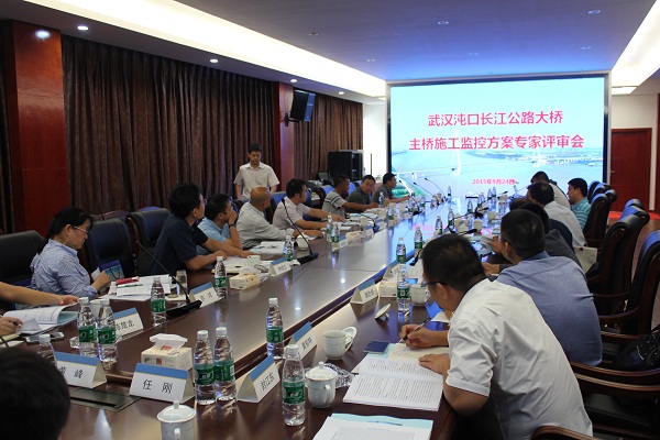 9月24日,,,,,,沌口大桥项目公司及总监办在武汉组织召开了“武汉沌口长江公路大桥主桥施工控制总体计划专家评审会”,,,,,,聚会约请了5位专家组成专家组,,,,,,省交通厅质监局、大桥建设、设计、监理、施工及钢箱梁制造等单位的代表加入了聚会 。。。。。研发中心总司理张永涛、监控手艺研究室主任田唯等代表监控单位参会,,,,,,监控手艺研究室主任助理朱浩作了沌口大桥主桥施工监控计划汇报 。。。。。